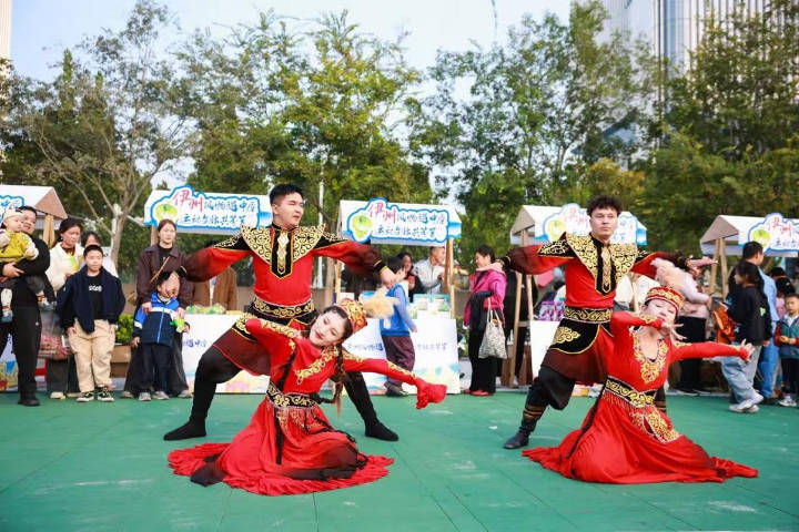 宣传推介区同样人气高涨。维吾尔族舞蹈《麦西来甫跳起来》欢快的节奏,引得现场市民随之舞动;当哈密赛乃姆舞者登场,围观市民或随旋律鼓掌,或举起手机记录精彩瞬间;哈密瓜品尝展位前,伊州区农业农村局干部热情地为群众切瓜分享……“看得见、摸得着、带得走”的多元体验,让伊州魅力跃然眼前,更直抵心间。
